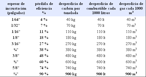 de agua como en maquinarias incrustadas en condiciones normales se advierte una proporción ampliamente